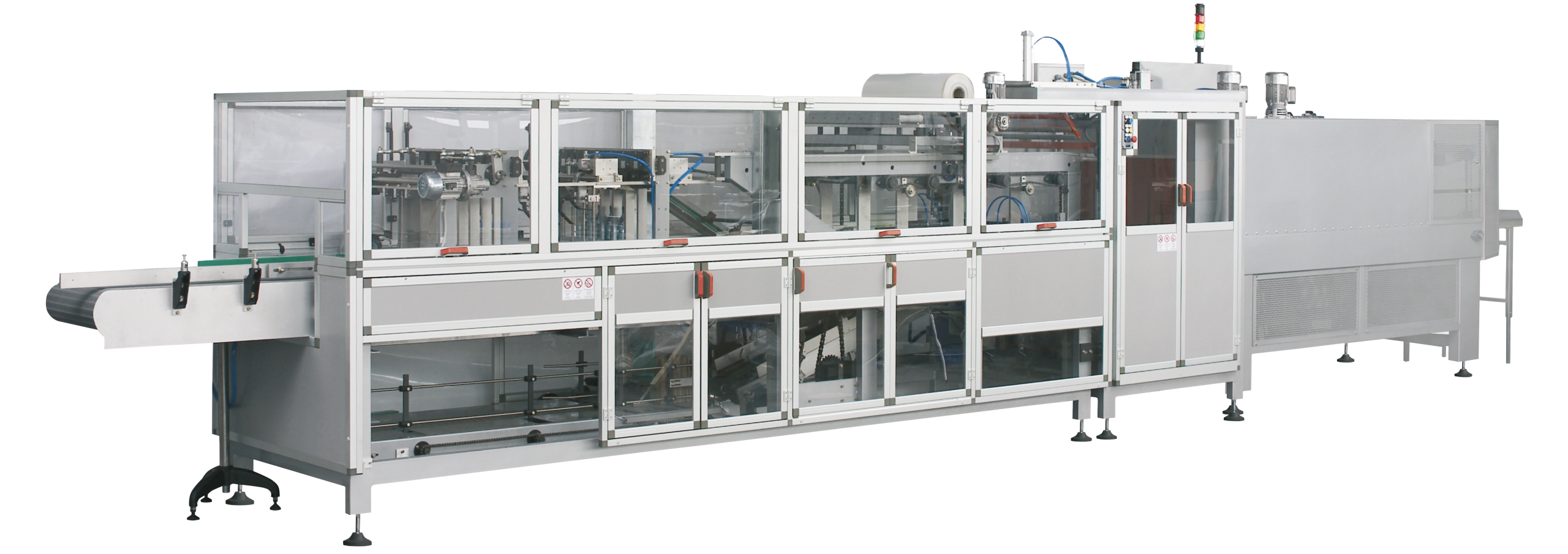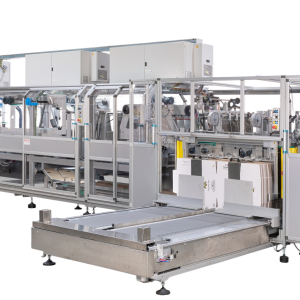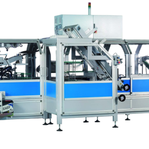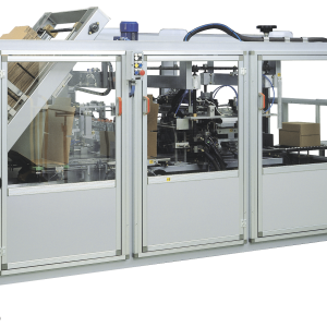 This series is composed of compact wrap-around case packers suitable to pack full cases (shippers), display cases, display tray and bottom trays. Equipped with a flexible collating system. On request, the line can be designed to allow a manual or automatic insertion of a partition. The machines can be combined with Film shrink-wrapping machines. All lines have a cardboard magazine with storage capacity suitable for the required speed and with easy loading during the normal machine operation without machine stop.