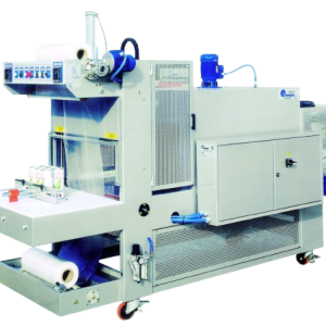 Automatic monoblock line to pack square, rectangular, cylindrical and oval shaped product with Polyethylene film and with flat cardboard support (pad) inserting.