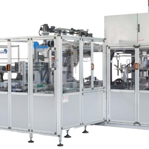 This series is composed of compact wrap-around case packers suitable to pack full cases (shippers), display cases, display tray and bottom trays. Equipped with a flexible collating system. On request, the line can be designed to allow a manual or automatic insertion of a partition. The machines can be combined with Film shrink-wrapping machines. All lines have a cardboard magazine with storage capacity suitable for the required speed and with easy loading during the normal machine operation without machine stop.