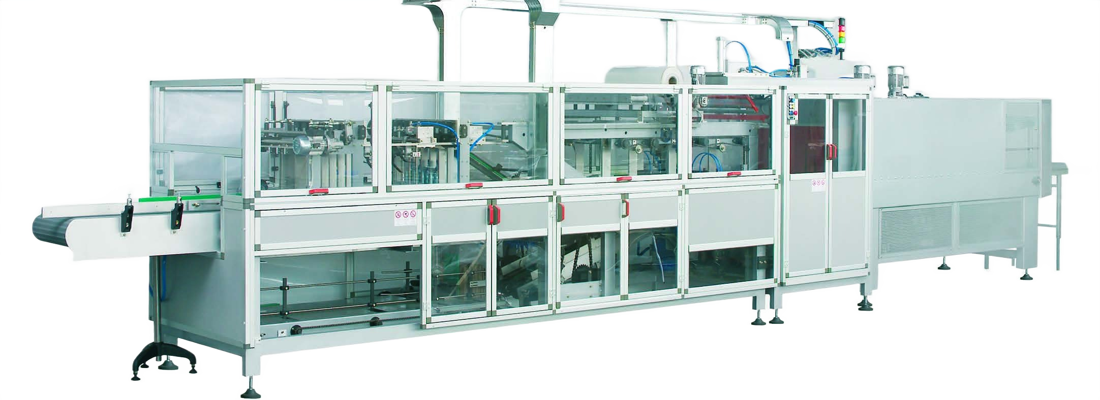 This series is composed of compact wrap-around case packers suitable to pack full cases (shippers), display cases, display tray and bottom trays. Equipped with a flexible collating system. On request, the line can be designed to allow a manual or automatic insertion of a partition. The machines can be combined with Film shrink-wrapping machines. All lines have a cardboard magazine with storage capacity suitable for the required speed and with easy loading during the normal machine operation without machine stop.