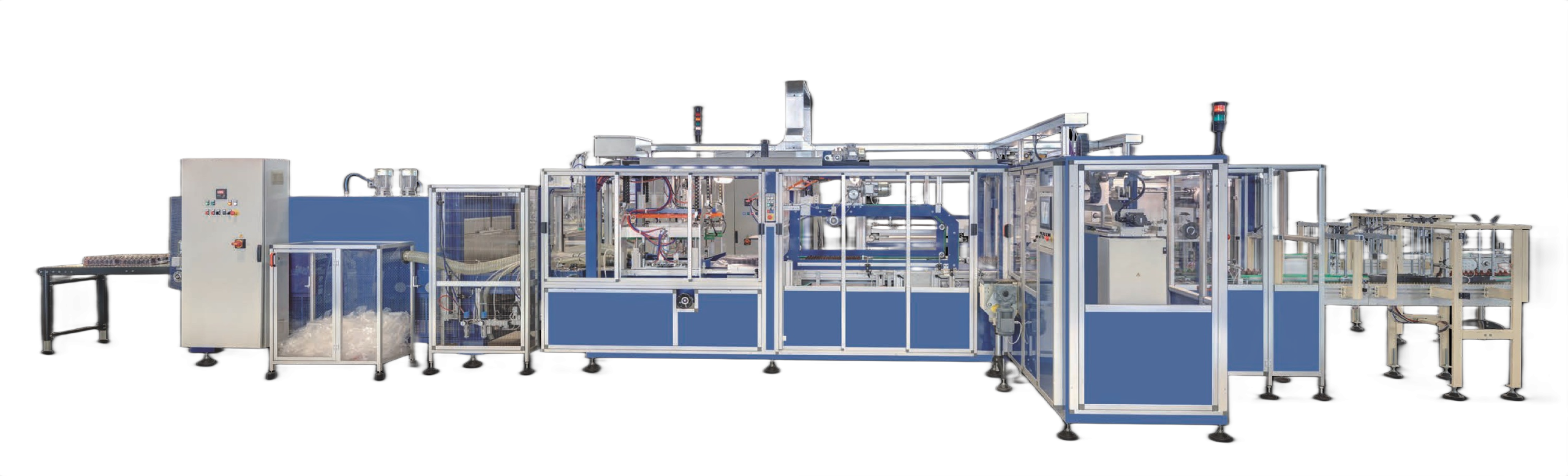 This series is composed of compact wrap-around case packers suitable to pack full cases (shippers), display cases, display tray and bottom trays. Equipped with a flexible collating system. On request, the line can be designed to allow a manual or automatic insertion of a partition. The machines can be combined with Film shrink-wrapping machines. All lines have a cardboard magazine with storage capacity suitable for the required speed and with easy loading during the normal machine operation without machine stop.