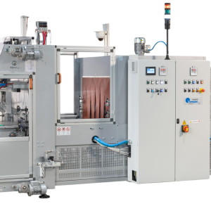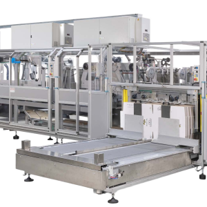 Automatic lines for the packing of glass tubes for the pharmaceutical and lighting industry. The tubes are counted, stacked and wrapped with shrink film on the ends.